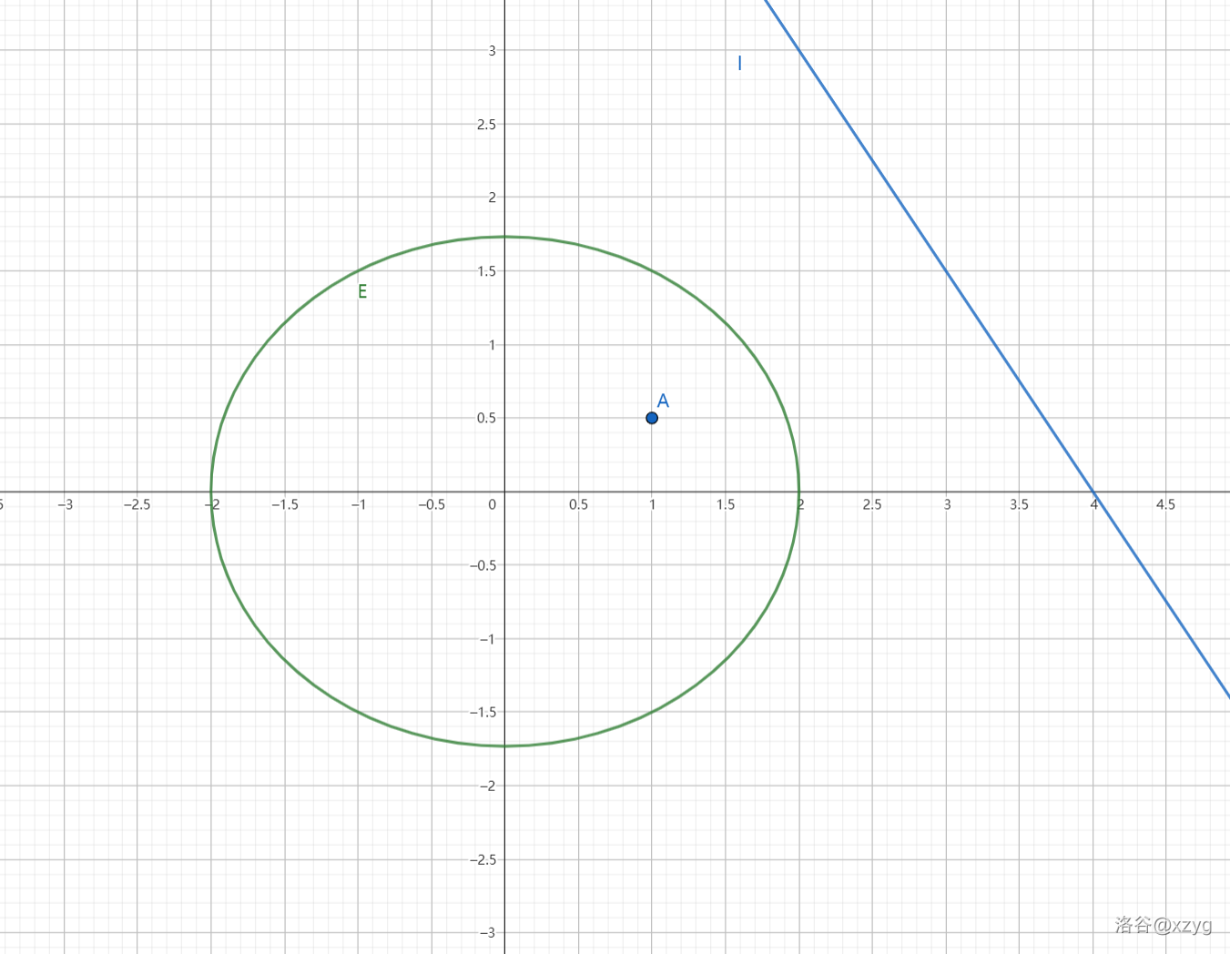 (如图,直线 $ l: \frac{x}{4} + \frac{y}{6} = 1 $ 即为点 $ A(1,\frac{1}{2}) $ 关于椭圆 $ E:\frac{x^2}{4} + \frac{y^2}{3} = 1 $ 的极线)