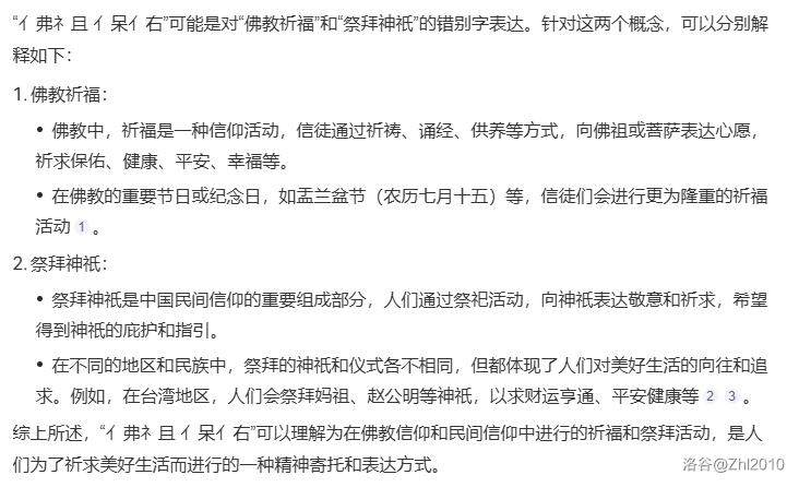 亻弗礻且 亻呆亻右应该是佛祖保佑吧。