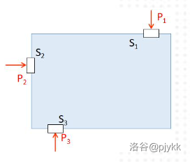考虑一个 $P_1$ 处向内压的虚位移 $\delta x_1$,此时 $P_2,P_3$ 处分别有向外虚位移 $\delta x_2,\delta x_3$,由体积不变及虚功原理: