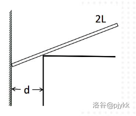 **例 1.4** 如图,质量为 $m$ 的均匀细杆与光滑表面相切,求平衡时杆与水平面的夹角 $\theta$ 与图中长度的关系。