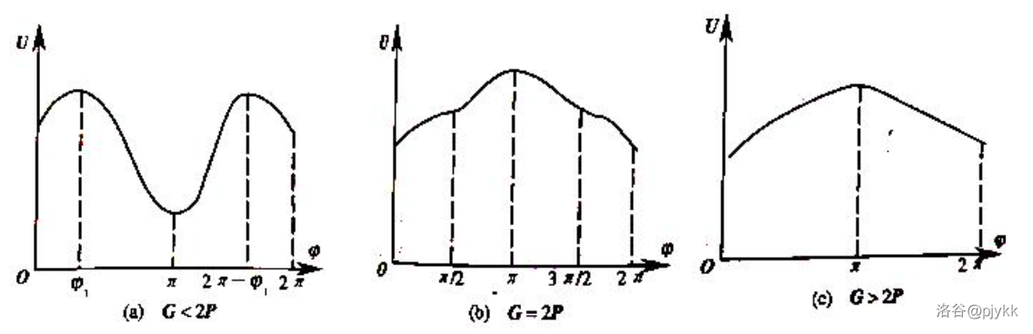 解得 $\varphi_1=\arcsin\dfrac{G}{2P}$,注意有可能不存在。