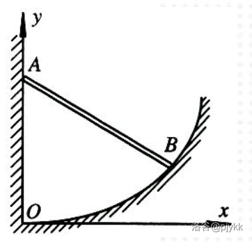 **例 3.2** 如图,匀质杆 $AB$ 长度为 $l$,各接触面光滑。若杆在 $Oxy$ 平面上任意位形都为平衡位置,求柱面方程。