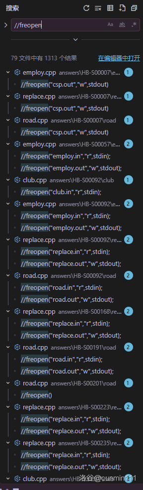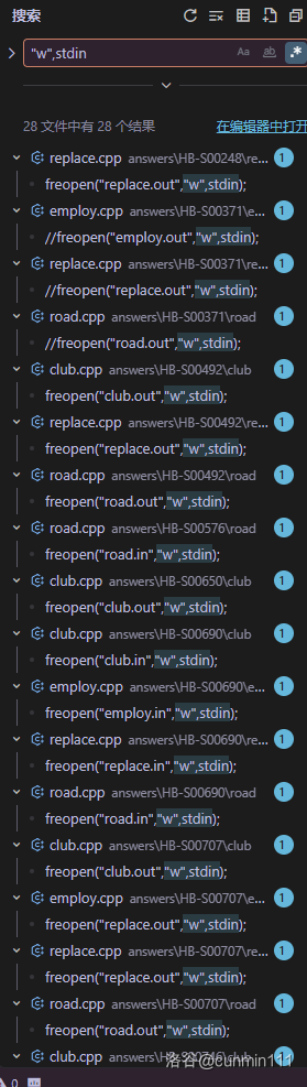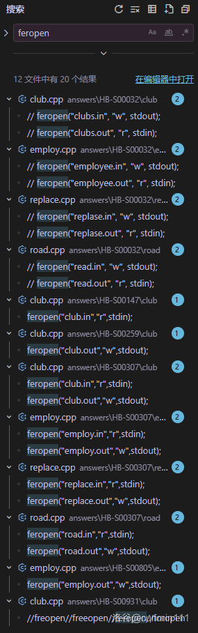 $3339$ 份代码包含至少一个正确拼写的 `freopen`;