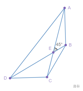如图,$AB = BC = CD ,\;E$为$AC$、$BD$交点,$\angle AEB = 45\degree ,\;$求证:$BD = \sqrt{2}AE.
