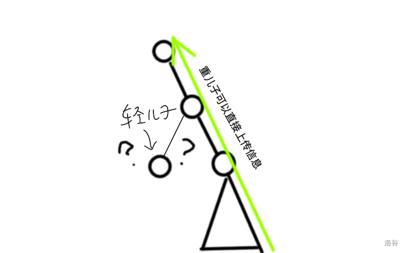 考虑把所有的轻儿子的贡献丢到__转移矩阵中__。这个值也可以被看成是个动态的参数。