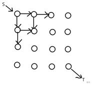 其中源点连向左上角的边和右下角连向汇点的边的容量为 $k$,每个点向下面的点和右面的点连边,这样就可以把原问题的路径转化为可行流。