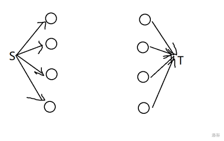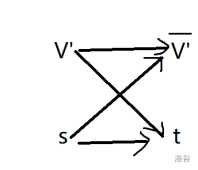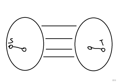 将点集 V 分成两个集合 S,T ,使得 S\cup T=V,S\cap T=\varnothing ,且 s\in S,t\in T 。