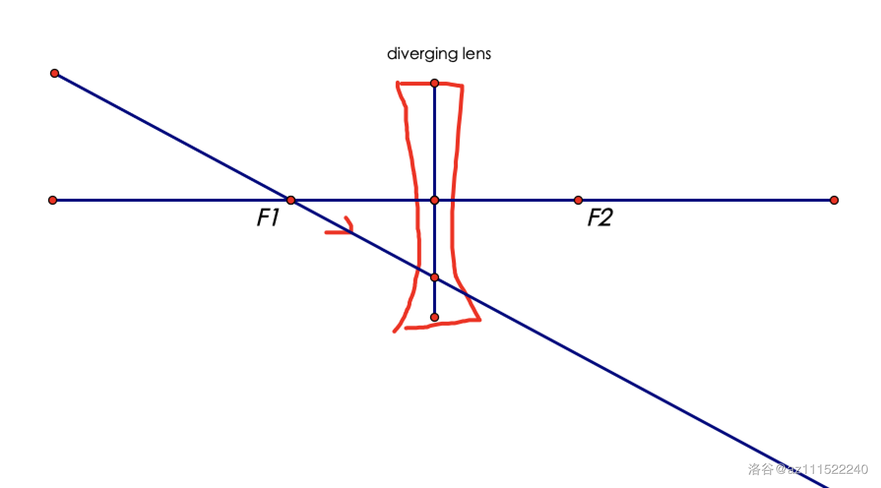 3, on the graph provided, draw the path of the incident ray passing one focus of a divergine lens. Keep your auxiliary lines on the graph. also prove that your result is correct by calculations.