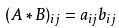 _m*n_ 的矩阵 _A_ 与 _m*n_ 的矩阵 _B_ 的哈达马积记为 _A*B_ , _A*B_ 也是一个 _m*n_ 的矩阵,其各个元素的定义为两个矩阵对应元素的乘积