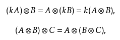 因为克罗内克乘积是张量积的特殊形式,所以它满足双线性与结合律。