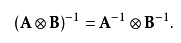 这个性质称为“混合乘积性质”,因为它混合了通常的矩阵乘积和克罗内克积。于是可以得到:当且仅当 _A_ 和 _B_ 是可逆的时, _A$\bigotimes$ B_ 是可逆的。