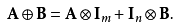 如果A是n×n矩阵,B是m×m矩阵,$I_k$表示k×k单位矩阵,那么我们可以定义克罗内克和⊕为: