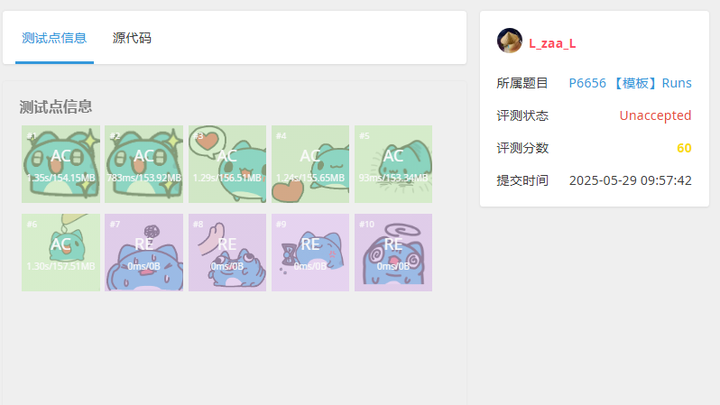但是你会发现 MLE 了,数组开小之后能得到 $60$ 分。