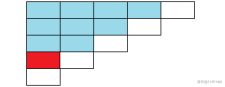 选第 (i,j) 个点需要敲掉的砖块数量就是 i\text{(行数)}。拿上图举例,如果你选的点是上图中红色的砖块,那就要敲掉红色砖块和所有蓝色砖块(紫色的是之前已经被敲掉了)。